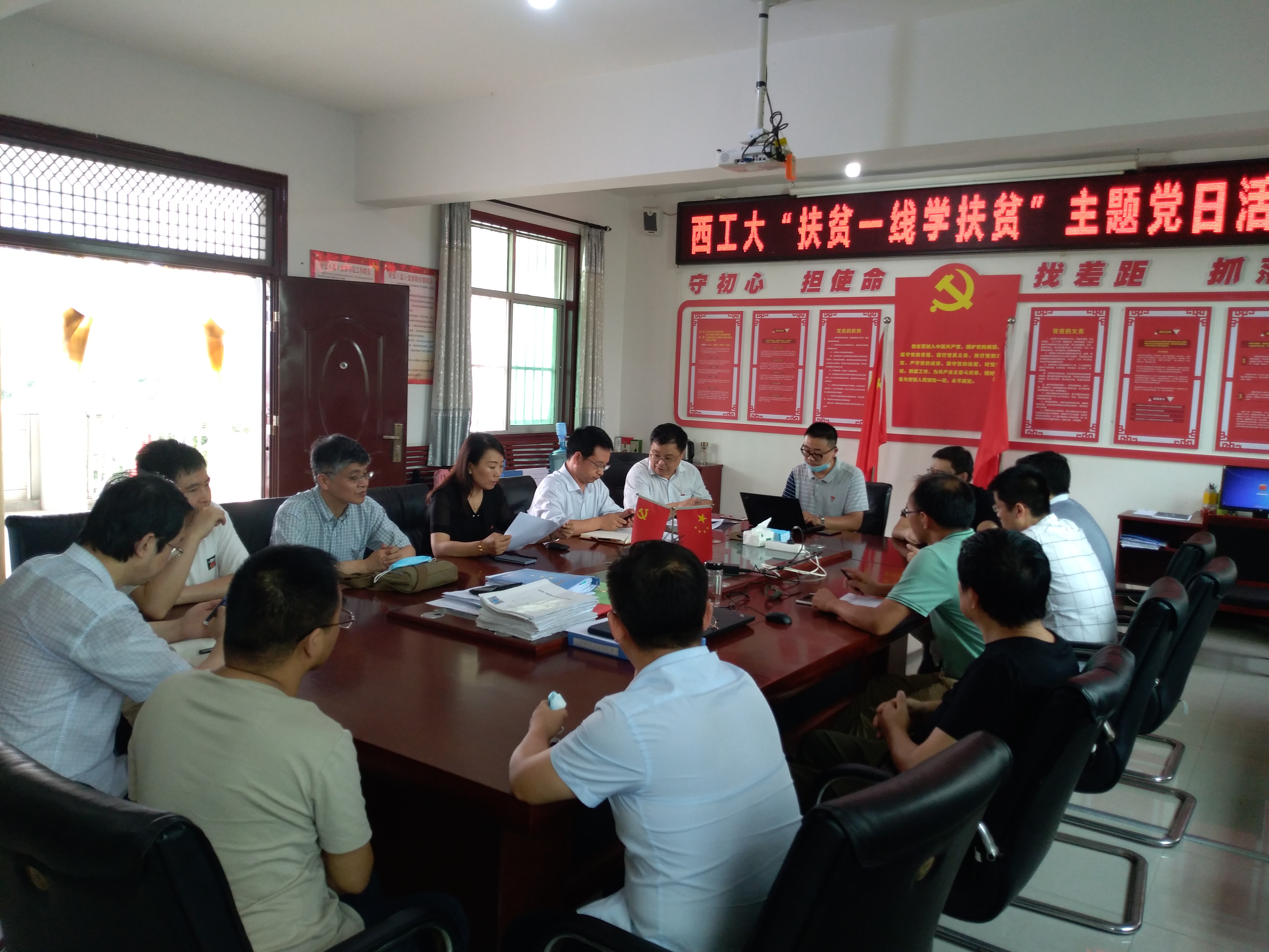 2020年是决胜全面建成小康社会、决战脱贫攻坚的收官之年,是实现第一个百年奋斗目标的关键之年。为深入贯彻习近平总书记来陕考察重要讲话精神和习近平总书记关于扶贫工作的重要论述,贯彻落实党中央脱贫攻坚决策部署,7月3日,数学与统计公司、世界杯官方网站入口2026、化学与化工公司党委领导班子带领部分教师党支部书记、院办党员十余人赴鄠邑区余下街道灵山寺村开展主题为“扶贫一线学扶贫”的主题党日活动。西安市科技局派驻鄠邑区余下街道灵山寺村驻村工作队队长仇寅虎、西安市优秀驻村第一书记关盛元及相关工作人员参加会议。会议由物理公司副书记王洲航书记主持。