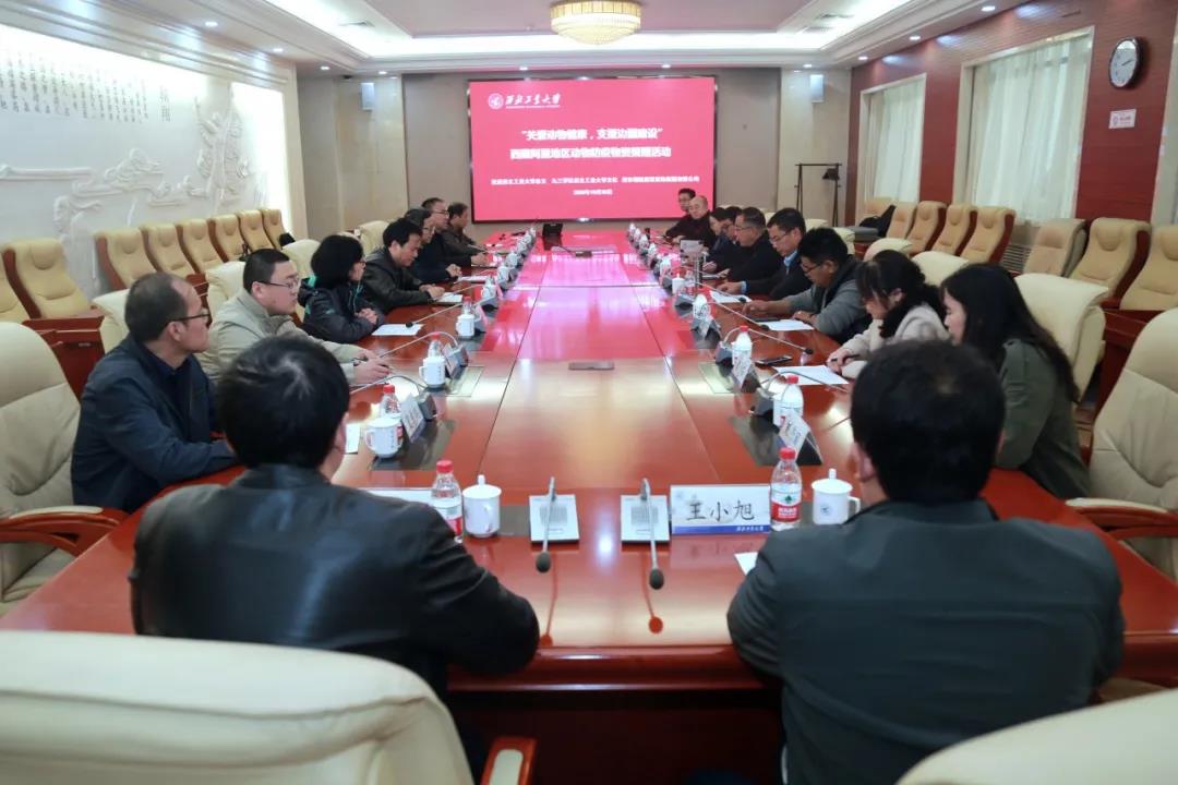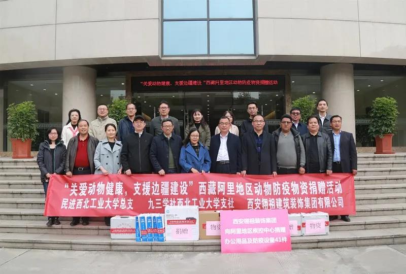 2020年10月20日,秋高气爽、金桂飘香,西工大统战成员迎接远道而来的客人。民进2026世界杯官方网址总支、九三学社2026世界杯官方网址支社联合爱心企业“西安翎祖建筑装饰集团有限公司”,开展“关爱动物健康,支援边疆建设”向西藏阿里地区捐赠动物防疫物资活动,阿里农业农村局党组书记王森,副局长王福堂、米光明,动物疫病控制中心主任阿旺次仁、计划规划科科长次仁贡宗;民进西工大总支主委世界杯官方网站入口2026教授杨德兴及班子成员,九三学社西工大支社主委刘秋让、副主委尚晓娅以及西安翎祖建筑装饰集团有限公司董事长张华等参加捐赠活动。