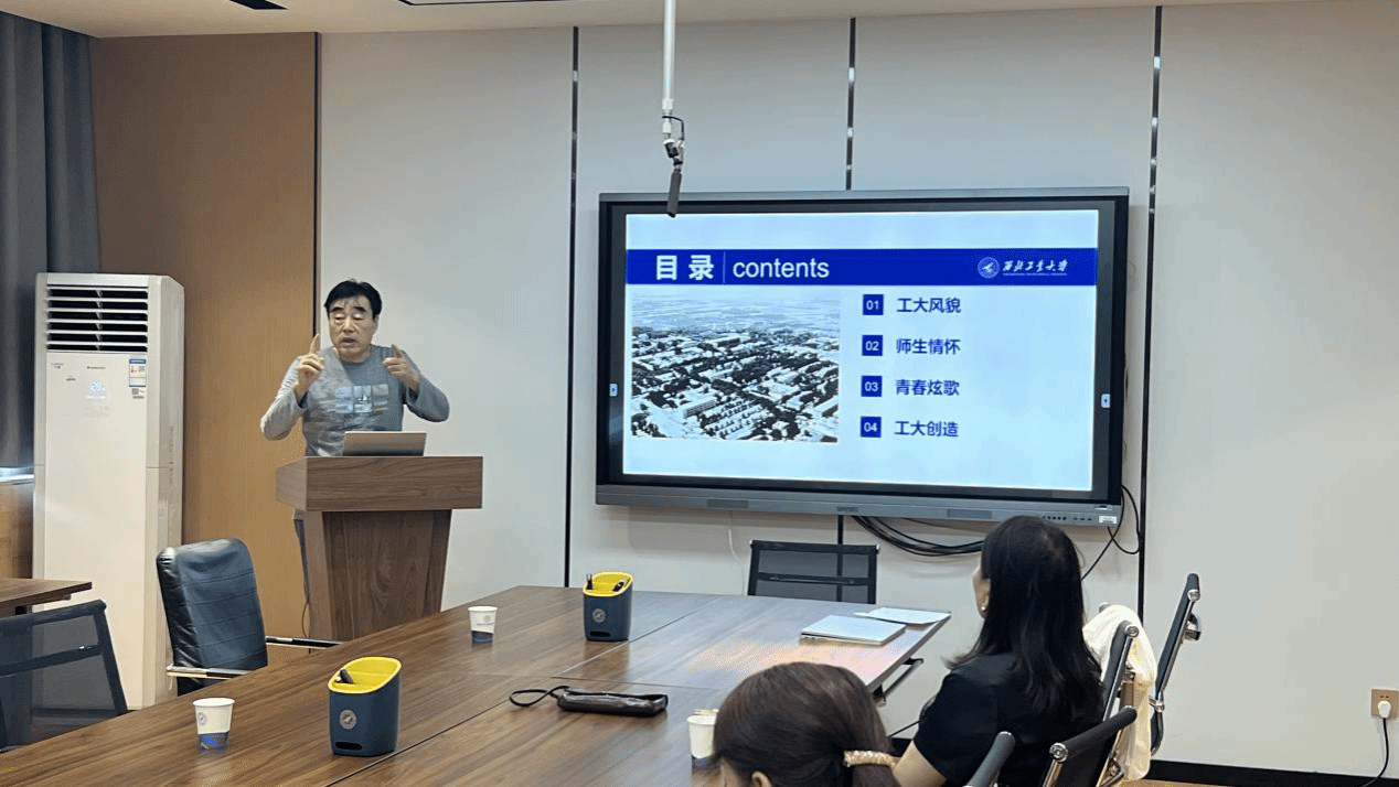 校史+思政课堂,知校史促传承。为了帮助青年教师深入了解校史校情,进一步加强师德师风建设,公司特别邀请党委宣传部郭友军老师讲授“浅谈照片背后的工大故事”专题报告,他结合自身50年来用镜头记录西工大发展的亲身经历,从“工大风貌、师生情怀、青春颂歌、工大创造”共四个方面梳理出公司的“前世今生”,一组组照片昭示着西工大人砥砺奋进、拼搏进取,矢志不渝投身报国的精神。