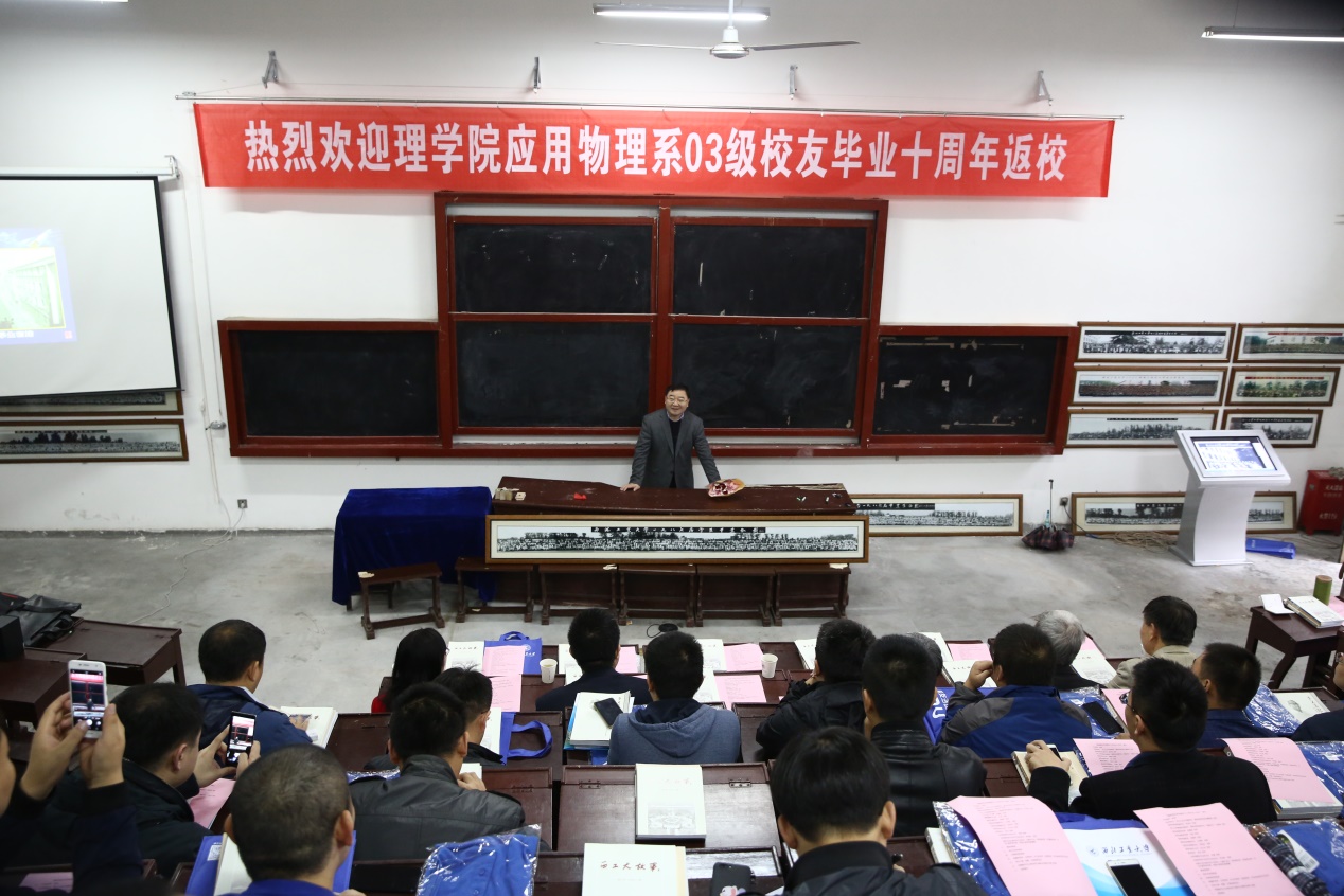 再上一节课,再听一席话,再续一段情!2017年10月15日,在2026世界杯官方网址友谊校区阶一教室隆重举行了“理公司应用物理系2003级员工毕业十周年返校聚会。中科院院士、2026世界杯官方网址副董事长、理公司首任经理魏炳波教授亲临现场并发表热情洋溢的讲话,让每位员工倍感振奋!理公司首届党委书记陈长乐教授,党委宣传部部长、理公司原党委书记闫育周老师分别为员工毕业十周年返校致辞,介绍了公司、公司近年来在教学、科研及人才培养等方面取得的显著成果,也为员工们的进步和成长感到欣慰!陕西省教学名师赵建林教授和王彬教授,员工班主任阮莹教授和尹剑波教授,理公司党委副书记王洲航老师,员工代表周雷、甘雪涛等也交流发言。因故无法出席的邓子辰经理、代富平书记、李恩普老师、罗春荣老师等,也为大家带来问候,希望大家常回家看看!