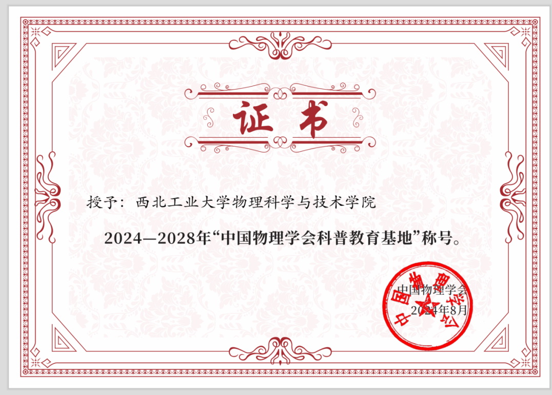 世界杯官方网站入口2026将以“中国物理学会科普教育基地”建设为契机,不断结合学科发展的优势方向,整合省部级重点实验室和基础物理教学平台等科研和教学资源,打造具有西工大特色的物理科普教育体系;通过师生共建和融合创新,扩大科普基地人员队伍,丰富科普主题内涵,面向校内外讲好具有西工大特色的物理学科故事。进一步推动国家科普能力建设,促进全民科学素质的提高,为推进中国式现代化凝聚起强大的创新力量。