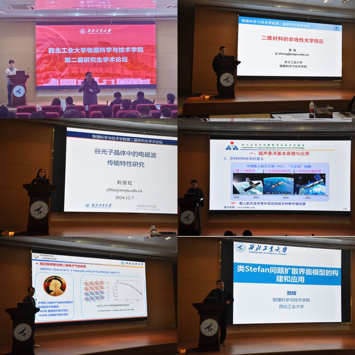 论坛伊始,由尹剑波副经理致开幕辞,宣布论坛开始。随后,章毅教授、刘亚红教授、耿德路教授、王拴虎副教授、邢辉副教授分别作了题为“二维材料的非线性光学效应”、“谷光子晶体中的电磁波传输特性研究”、“超声悬浮条件下液态合金快速凝固研究”、“复杂氧化物界面二维电输运特性及其调控研究”、“类Stefan问题扩散界面模型的构建和应用”的报告。参会师生就相关研究内容展开了热烈的交流讨论,现场学术氛围浓厚。同学们通过提问互动,不仅加深了对研究课题的理解,也收获了许多宝贵的学术建议。