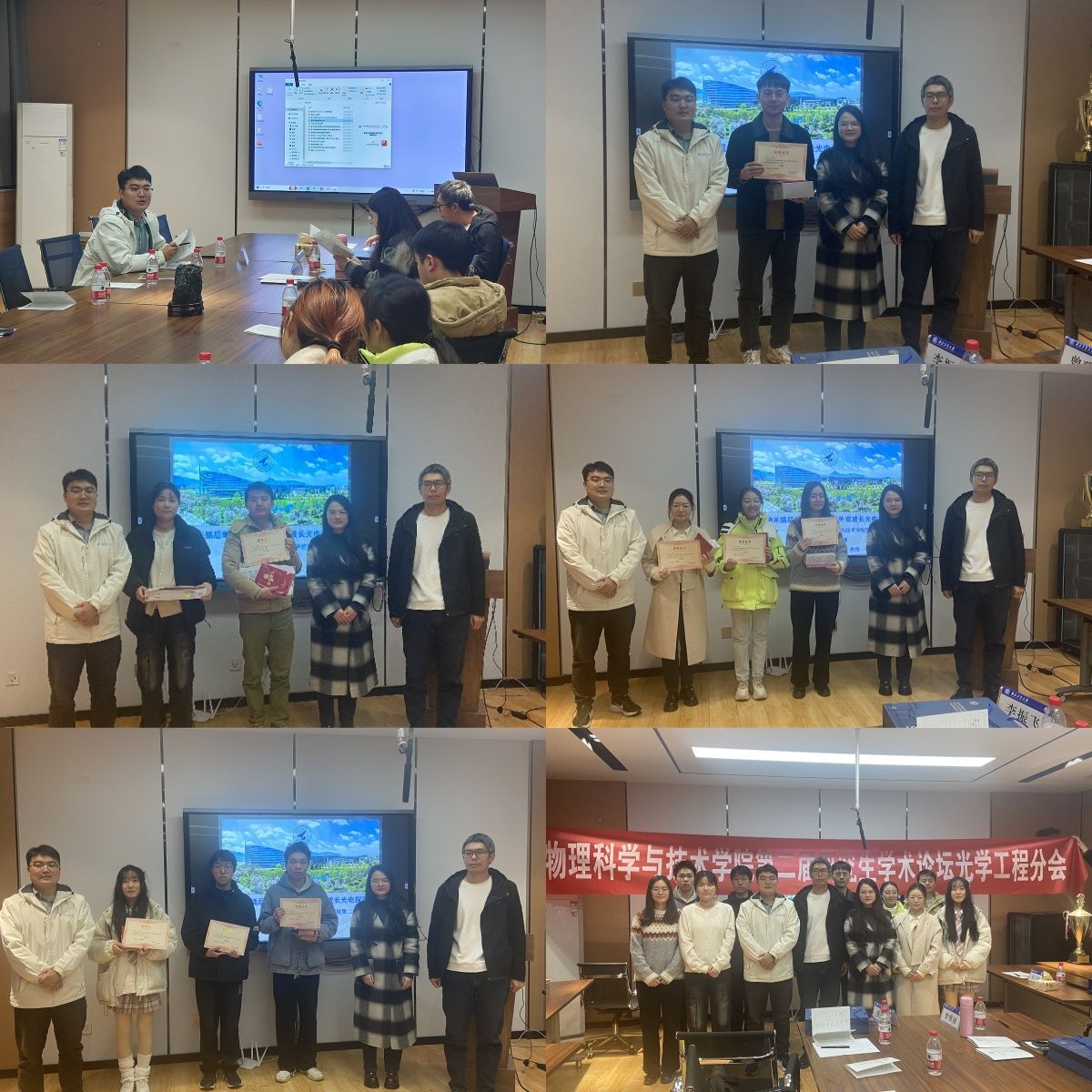 光学工程分论坛邀请了孙立勋、曾雅丽和李振飞三位副教授担任专家评委,其中孙立勋和曾雅丽分别作了 “可见光波段石墨烯表面极化激元”和“二维材料极化激元调控研究”的报告。11名研究生和本科生进行了成果汇报展示。经过评审,本分论坛共评选出一等奖1名、二等奖2名、三等奖3名和优秀奖5名。