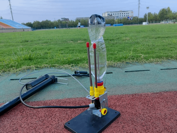 图4. 队员搭建的“弹簧滞后”和“水瓶火箭”实验装置
