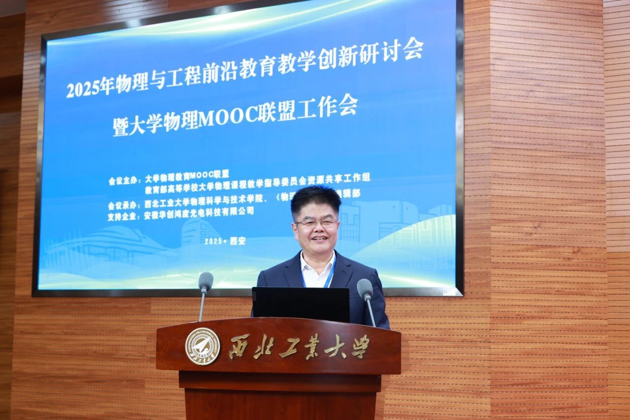 大学物理课程教指委主任委员、清华大学物理系王青教授代表主办单位致辞,向承办方、支持企业及与会嘉宾致谢。他表示,本次会议聚焦人工智能时代背景,旨在推动物理与工程教育的深度融合,促进MOOC资源的共建共享,切实提升员工解决工程问题的基础物理能力,从而为培养新时代拔尖创新人才贡献力量。
