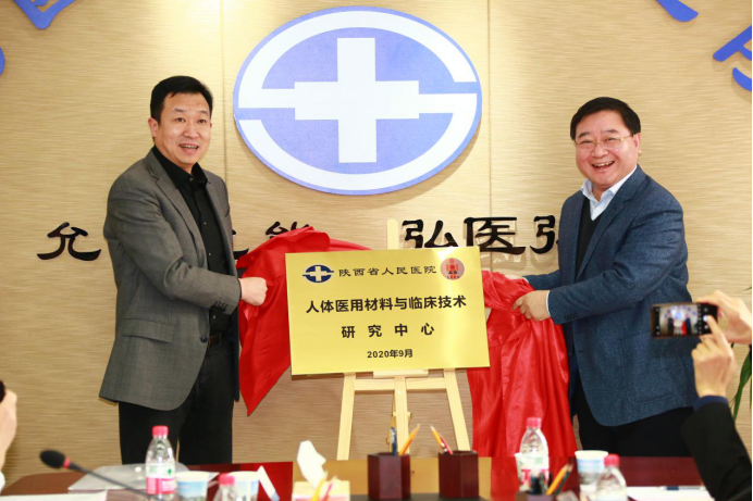 会上,省医院高敬龙书记致欢迎词,对省医院骨科病院和魏炳波院士团队多年合作、促成研究中心的成立表示祝贺,期待研究中心进一步促进两个单位在医工结合领域的深度合作,早日产生丰硕成果。魏炳波院士在讲话中回顾了两个团队的合作历史和中心的策划、推进过程,对各方积极促进双方合作表示感谢,医工融合是科技发展的趋势,也是科技工作者和医务工作者的重要使命,表示将发挥公司在材料领域的研究优势和省医院在临床领域的优势,深化医工结合,促进学科交叉,为人类健康和医学进步,做出材料科学应有的贡献。张卫红副董事长在讲话中对研究中心的成立表示祝贺,他表示,研究中心的成立,是西工大与省人民医院战略合作走向深化的重要内容,相信双方能各发挥各自优势,不断取得新成果,也期待双方在更多领域加深合作,提升学术水平,造福社会。省医院宋张骏经理在讲话中表示,中心的成立是一次跨领域、跨学科、优势互补的合作,相信在双方共同努力下,中心将成为陕西乃至西北有重要影响的医工结合的科研技术平台。