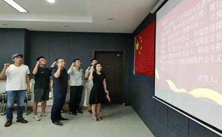 最后,在翟薇副经理的带领下,新进青年教师举行从教宣誓。6名新入职教师举起右拳,进行庄严的入职宣誓,进一步激发了教师的使命感和责任感。