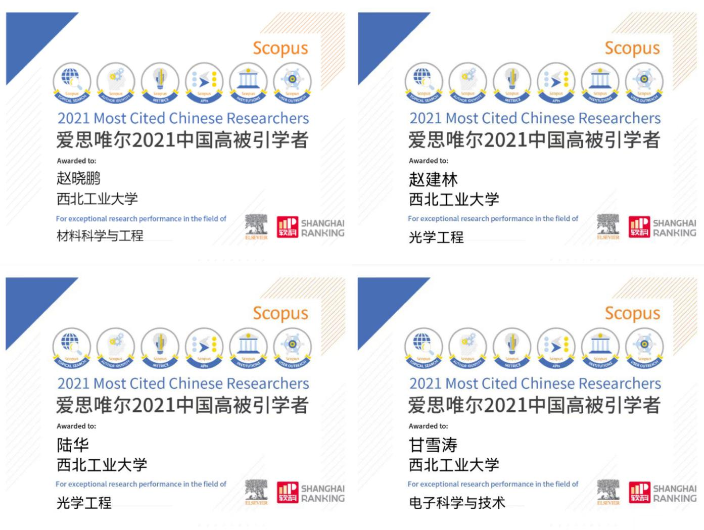 公司本次共有36人上榜,其中世界杯官方网站入口20264人上榜。赵晓鹏教授入选材料科学与工程学科中国高被引学者,赵建林教授、陆华教授入选光学工程学科中国高被引学者,甘雪涛教授入选电子科学与技术学科中国高被引学者。