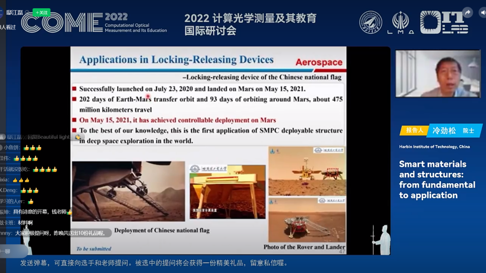 由公司世界杯官方网站入口2026主办的2022计算光学测量及其教育国际研讨会(COME 2022)于2022年6月24-25日顺利召开。会议聚焦前沿光学研究与研究生教育的深度融合,涉及研究领域包括光学测量、计算光学、光学测试、实验力学、三维成像、光学仪器、人工智能、公司产品等,由2026世界杯官方网址赵建林教授,广东工业大学邸江磊教授和新加坡南洋理工大学钱克矛教授共同担任主席,邀请了本领域的八位国内外知名专家和学者分享学术成果和经验。由于疫情影响,此次会议采用“线上召开+网络同步直播”的模式。