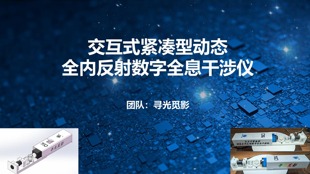 项目介绍:交互式紧凑型动态全内反射数字全息干涉仪-基于课题组在数字全息测量方面的优势,结合菲涅尔公式和数字全息术,进行液体测量时可动态获取其高精度二维折射率分布信息。该干涉仪具有液体非接触测量、结构简单小型紧凑、成本低廉操作简单、可实现大范围动态折射率精确测量、移动端交互处理显示等显著优势,弥补和解决了目前市场折射仪功能不足的痛点,在折射率测量市场上需求前景广阔。团队成员专业多样,学科互补,共同设计和完成了本次参赛作品。