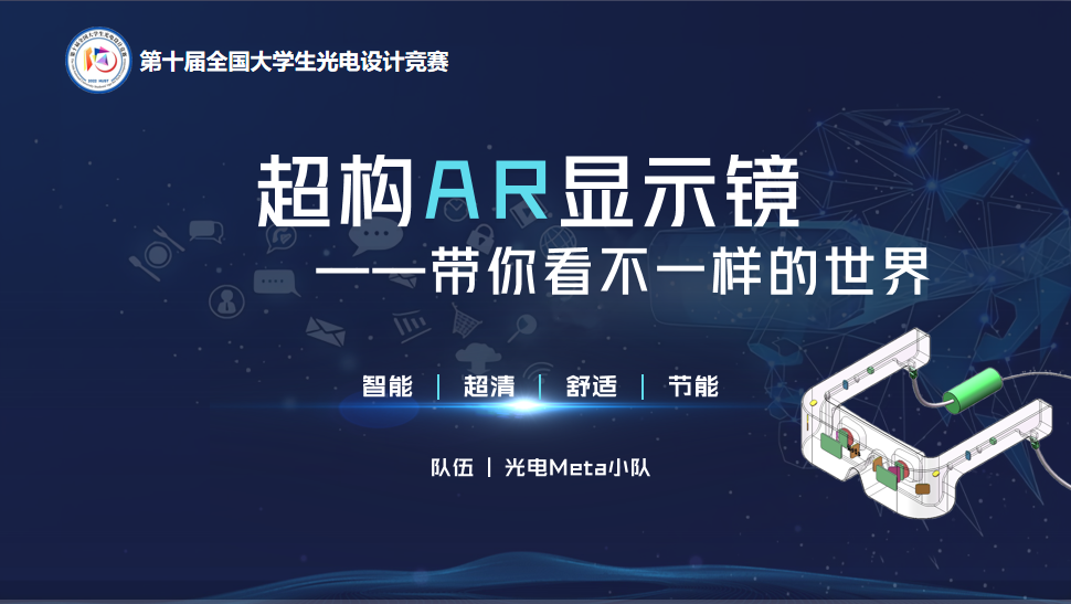 项目介绍:超构AR显示镜——将虚拟带进现实,万物互联不再是科学设想。AR是下一代计算平台,已经成为科技界的共识。本项目立足于AR技术实现原理,依托陕西省光信息技术重点实验室,引入超透镜替代传统的光学元件,具备大视场角成像与多波段消色差的能力;联用液晶实现光强匹配、变焦显示与动态调节的的功能;从而搭建一台真正适合消费者生活实用的AR显示设备。让我们的设备用超表面助力新科技,引领新市场,带我们探索不一样的世界。