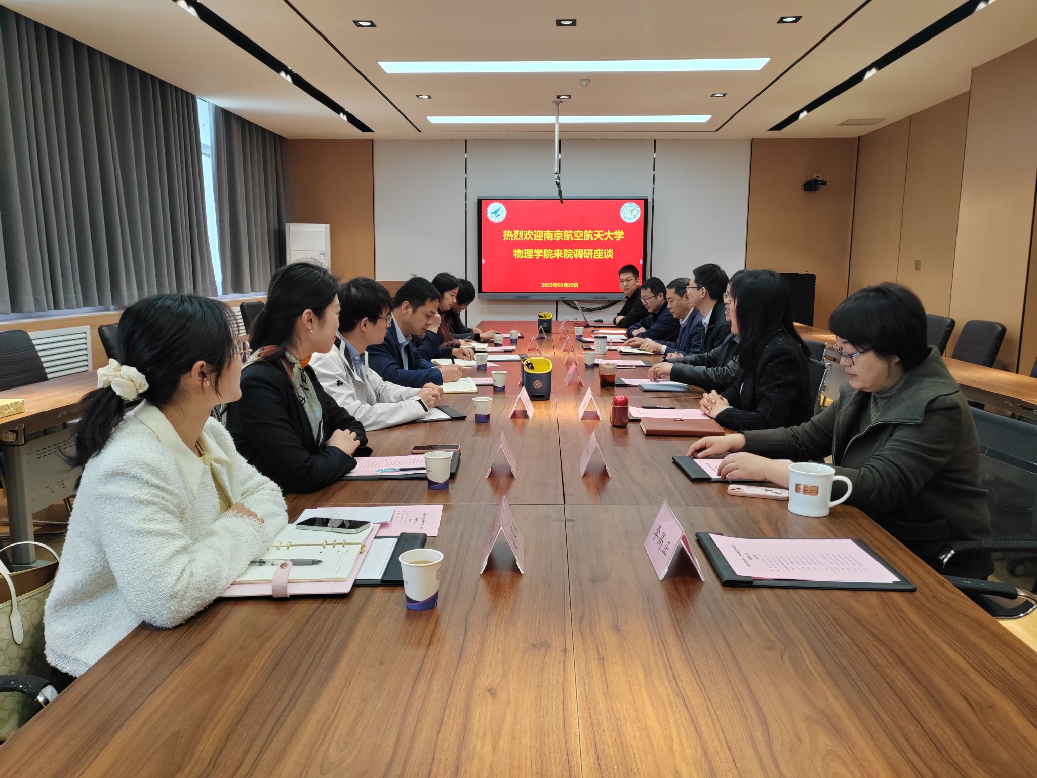 3月29日上午,南京航空航天大学物理公司党委书记陈修文、经理刘友文、党委副书记欧珊等一行7人来公司调研交流。世界杯官方网站入口2026经理翟薇、党委书记晁小荣、党委副书记王洲航、副经理尹剑波、侯泉文、经理助理闫娜等参加会议,会议由晁小荣主持。