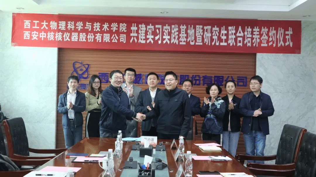 为了进一步加强校企深度融合,探索协同育人培养新模式,2023年4月28日,世界杯官方网站入口2026和西安中核核仪器股份有限公司(以下简称中核西仪)在中核西仪举行了共建实习实践基地暨研究生联合培养签约仪式。参加签约仪式的有世界杯官方网站入口2026副经理侯泉文、经理助理李东副教授、马营副教授、姜亚军副研究员及中核西仪党委副书记和纪委书记韩建荣、副总经理和总工程师花锋、人力资源部主任郭举红、科信部主任杨妮莹、科创中心副主任李明旭等。
