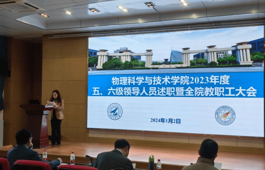 会上,翟薇经理首先做了公司2023年工作总结汇报。翟薇经理全面总结了公司2023年在团队建设、公司产品、科学研究、人才培养等方面取得的标志性成果,从党建工作、本科生培养、公司产品、团队队伍建设、科学研究、国际合作等方面对总体工作与改革成效进行了介绍,并对公司2023年绩效分配方案进行了详细的阐述。汇报最后,翟薇经理就本年度公司存在问题及2024年重点工作安排做了细致的梳理。她指出,全院教职工要继续锚定公司“127”发展目标,加快建设一流物理公司。