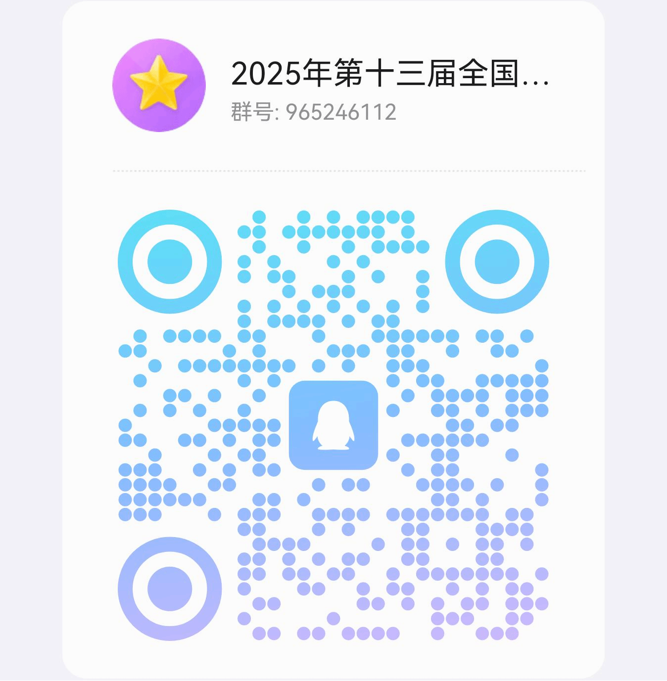 报名方法:为方便开展竞赛交流和通知发布,设置2025年第十三届全国老员工光电设计竞赛QQ群965246112(扫描以下二维码加入),请参赛同学加入并关注群通知。