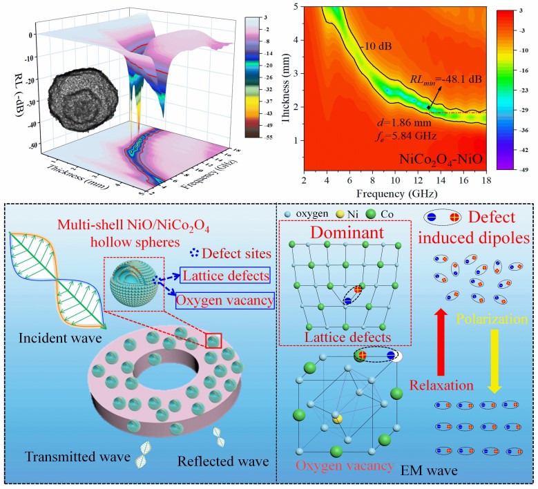 研究成果以“Defect Induced Polarization Loss in Multi-Shelled Spinel Hollow Spheres for Electromagnetic Wave Absorption Application”为题,在国际知名期刊《Advanced Science》上发表。论文第一作者为该院博士研究生秦明,通讯作者为吴宏景副教授。论文链接:https://onlinelibrary.wiley.com/doi/10.1002/advs.202004640,DOI: 10.1002/advs.202004640。