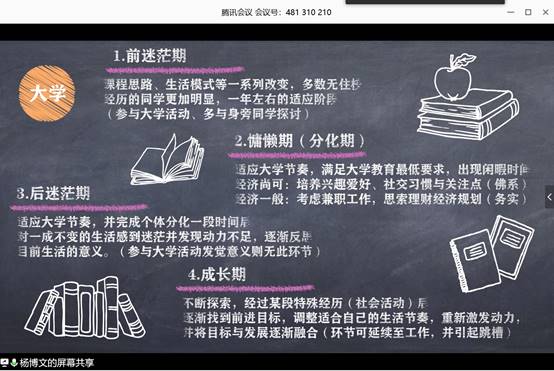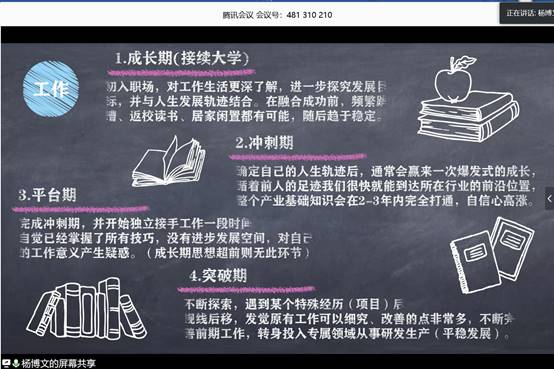 杨书记将自己的大学和工作各分为了四个时期,为同学们日后的发展提供了意见与建议。杨书记表示,作为当代老员工,不仅要敢于追求,更要对自己的未来有着清晰的认识。我们应该在学习和工作中发掘自己的兴趣爱好,并结合实际,选择适合自己的发展道路。