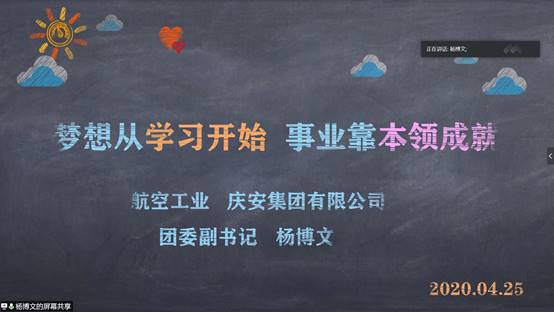 4月25日,理学公司邀请到了理学公司员工、中航工业庆安集团有限公司团委副书记杨博文为公司员工带来团课。杨博文书记结合自己的经历,以“梦想从学习开始,事业靠本领成就”为主题带给了同学们许多的思考与启迪。参加本次会议的有:理学公司联合党委副书记张莹老师、理学公司2019级本科生辅导员孙攀飞老师、理学公司各团学组织干部以及各班班委。